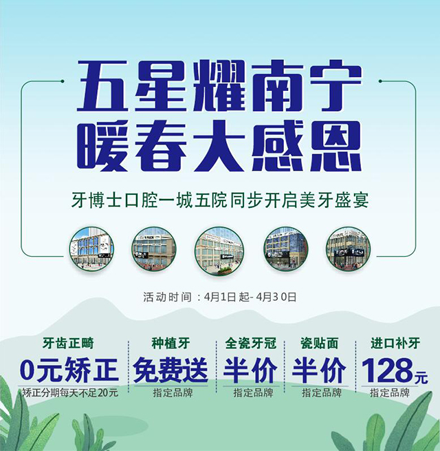 牙博士口腔丨“五星耀南宁,暖春大感恩”超级活动特惠! 牙博士口腔开启春季美牙盛宴,无论您的牙齿需要种植、矫正、美白还是修复!